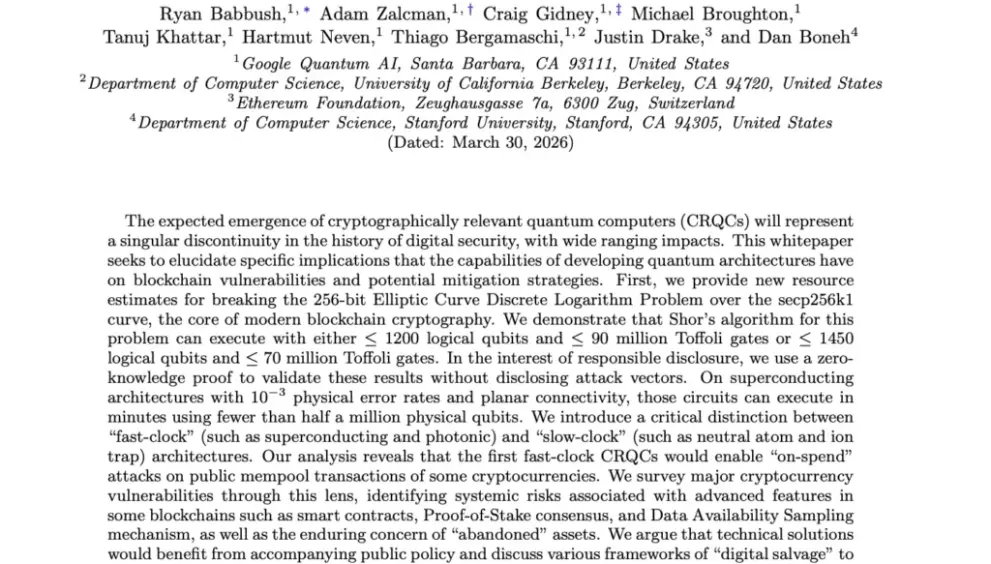 Last week, Google Quantum AI, in collaboration with the Ethereum Foundation and Stanford, published a whitepaper that should make every blockchain builder, every crypto holder, and every government CIO sit up straight. The paper is titled “Securing Elliptic Curve Cryptocurrencies against Quantum Vulnerabilities: Resource Estimates and Mitigations.” It’s 57 pages of technical detail, but the core message is simple: they’ve figured out how to break the cryptography behind Bitcoin and Ethereum using far fewer quantum resources than anyone previously estimated.