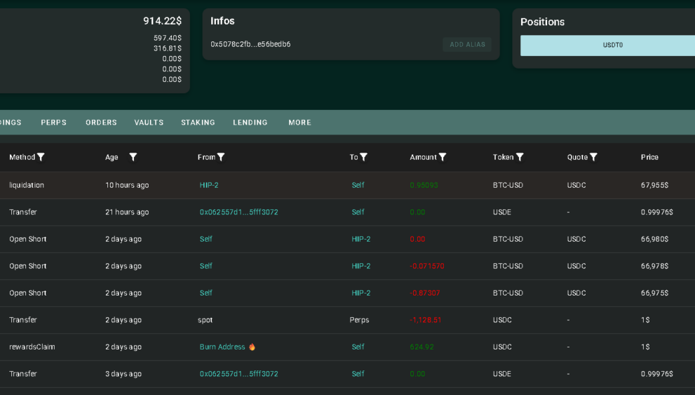 Wynn had been opening 40x leverage short positions on Bitcoin through Hyperliquid since mid-March 2026, with position sizes ranging from $44,000 to $190,000 in notional value. A short position is a bet that the price will fall – so every time Bitcoin rallied instead, Wynn’s positions moved in the wrong direction fast.